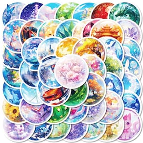 Material: papel e vinil Peso: 30-60 g Tamanho: 3-6 cm Quantidade: 50 unidades Desenhos de vidro encantadores: 50 lindos adesivos com gatos desenhados à mão, cenas da natureza e elementos mágicos, tudo em molduras circulares de “vidro” para um toque extravagante e onírico. Impermeáveis e duráveis: feitos com vinil de alta qualidade, esses adesivos à prova d'água são perfeitos para uso duradouro em várias superfícies. Perfeito para projetos de bricolage: ideal para decorar capas de telefone, garrafas de água, laptops, skates, álbuns de recortes e muito mais. Fácil de aplicar: basta descascar e colar esses decalques de vinil em superfícies lisas sem deixar resíduos ou danos. Cute & Whimsical: um conjunto delicioso para fãs de designs fofos e fantásticos, perfeito para personalizar acessórios ou como presente para amantes de gatos e arte.