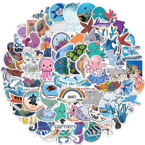 100 designs marinhos exclusivos — Este conjunto vibrante apresenta 100 decalques com temas oceânicos, incluindo tartarugas, medusas, tubarões, recifes de coral e muito mais em estilos divertidos de desenho animado. Material de vinil impermeável — Feito de vinil durável, cada decalque é à prova d'água e resistente às intempéries, perfeito para uso interno e externo. Arte divertida e educativa — Ótima para crianças e adolescentes explorarem a vida marinha enquanto decoram cadernos, álbuns de recortes, laptops e garrafas de água. Fácil aplicação e remoção limpa — Os adesivos são fáceis de aplicar e remover sem deixar resíduos, seguros para superfícies como telefones, guitarras e skates. Amplo uso criativo — Ideal para personalizar diários, equipamentos de viagem, capacetes, lancheiras e muito mais com uma estética subaquática divertida.
