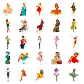 Desenhos inspirados em pôsteres vintage — Este conjunto inclui 50 adesivos exclusivos que mostram mulheres elegantes de pôsteres e anúncios da moda clássica dos anos 1940 e 60. Estilo retrô atemporal — Cores brilhantes e obras de arte pin-up elegantes tornam esses decalques perfeitos para fãs da estética nostálgica e do charme da velha escola. Vinil impermeável premium — Feitos de vinil de alta qualidade, esses adesivos são duráveis, à prova d'água e resistentes ao desbotamento e arranhões. Fácil de usar e remover — Adere bem em qualquer superfície lisa, como notebooks, laptops, garrafas de água, e pode ser removido de forma limpa sem deixar resíduos pegajosos. Perfeito para decoração diária de bricolage — uma maneira divertida e elegante de decorar diários, malas, capas de telefone, álbuns de recortes, agendas ou qualquer projeto criativo.