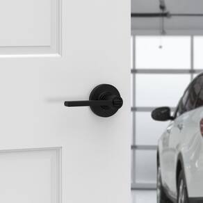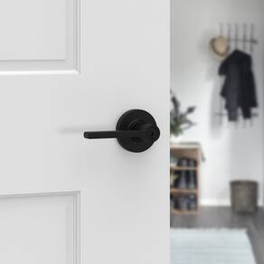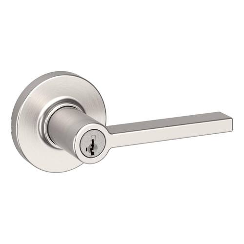 Conjunto de alavancas de entrada com chave de cilindro único Kwikset 405CSLRDT-V1 Casey com rosa redonda e chave inteligente - níquel acetinado