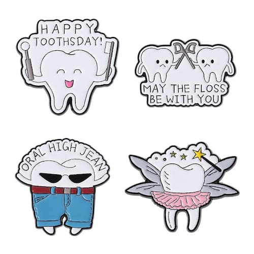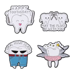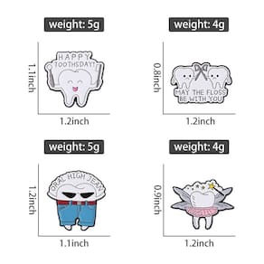 Material: Liga Tamanho: 3 x 2,7 cm Peso: 18 g Quantidade: você receberá todas as peças em quantidade igual à primeira foto principal Show Humorous Dental Tema: Inclui 4 broches esmaltados com designs criativos inspirados nos dentes, como “Happy Toothsday”, slogan de uso do fio dental, cool tooth in jeans e fairy tooth. Construção em liga durável: feitos de liga de qualidade com revestimento de esmalte liso, esses pinos resistem ao desbotamento e mantêm sua aparência vibrante. Compacto e leve: cada crachá é portátil e fácil de colocar em blusas, jalecos, chapéus, bolsas ou uniformes sem desconforto. Perfeito para profissionais de odontologia: acessório divertido para dentistas, higienistas, estudantes de odontologia ou campanhas de saúde bucal, tornando as roupas mais envolventes. Decoração versátil: adequada para uso diário, uso em sala de aula, eventos temáticos ou atividades de conscientização para adicionar humor e criatividade a qualquer look.