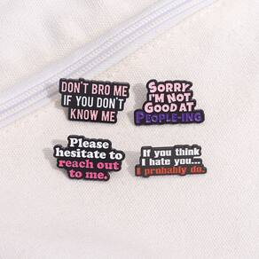 Material: liga Tamanho: 3x1,4-1,9 cm Peso: 20 g Quantidade: você receberá todas as peças em quantidade igual à primeira foto principal ShowQuote Designs — O conjunto inclui vários broches de esmalte com frases espirituosas como “Não me irrite se você não me conhece” e “Desculpe, eu não sou bom em lidar com pessoas”, perfeitos para mostrar humor e personalidade. Material de liga — Feito de liga de qualidade com acabamento esmaltado suave, garantindo cores brilhantes, resistência ao desgaste e brilho duradouro. E leve — Cada broche mede cerca de 3x1,4—1,9 cm e o conjunto pesa cerca de 20g, confortável de usar sem aumentar o volume. Estilo — Funciona como alfinetes de blusa, alfinetes de lapela ou crachás, adequados para jaquetas, camisas, mochilas, chapéus ou cachecóis para adicionar diversão e atitude. Acessório de moda — Projetado para homens e mulheres, este conjunto de broches sarcásticos é ideal para roupas casuais, escolares, festas ou streetwear.