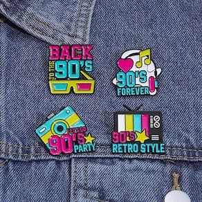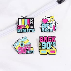 Material: Liga Tamanho: 3,4 x 3,2 cm Peso: 25 g Quantidade: você receberá todas as peças em quantidade igual ao design inspirado do primeiro programa cinematográfico principal — divertido conjunto de broches esmaltados com TV, câmera, óculos de sol e alfinetes com temas musicais com cores retrô brilhantes para uma atmosfera nostálgica. Material de liga durável — Feito de liga premium com revestimento de esmalte vibrante, resistente ao desbotamento e construído para uso duradouro. Uso versátil — Perfeito como alfinetes de blusa, broche, alfinete de lapela ou crachá para decorar jaquetas, camisas, mochilas e chapéus. Leve e confortável — cada pino mede 3,4 x 3,2 cm, pesando 25 g, é fácil de colocar e remover sem danificar a roupa. Colecionável moderno — Ótimo conjunto de acessórios para amantes da moda que gostam do estilo dos anos 90 e alfinetes exclusivos para roupas diárias.