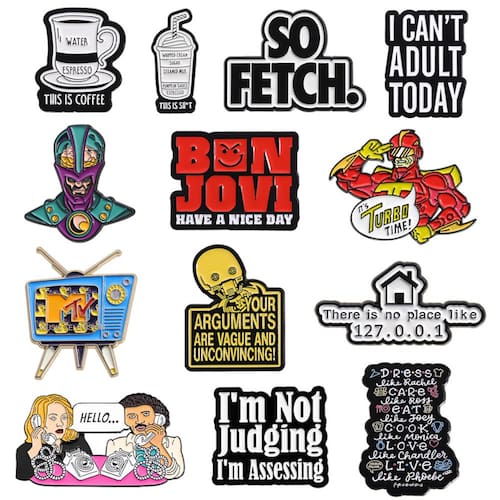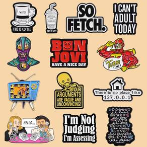 Material: liga. Tamanho: 2,9 x 3,6 cm Peso: 70 g Quantidade: você receberá todas as mesmas peças da primeira foto principal. Coleção ShowVersatile — Inclui 12 broches de esmalte criativos com citações ousadas, TV retrô, gráficos inspirados em desenhos animados, tipografia divertida e designs peculiares para uma combinação de acessórios modernos. Material de liga durável — Feito de liga resistente com revestimento de esmalte suave, garantindo uso duradouro, resistência a arranhões e cores vibrantes que se destacam em qualquer roupa. Estilo de várias cenas — perfeito como alfinetes de blusa, crachás de lapela ou acessórios de mochila, adequados para uso casual, festas, shows e roupas diárias para mostrar individualidade. Expressão criativa — designs arrojados permitem que você expresse humor, vibrações retrô e personalidade, complementando estilos de moda punk, streetwear ou do dia a dia. Compacto e leve — O tamanho pequeno e a construção leve tornam esses broches fáceis de transportar, usar ou coletar, oferecendo opções de estilo flexíveis sem aumentar o volume.