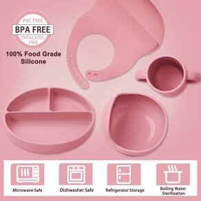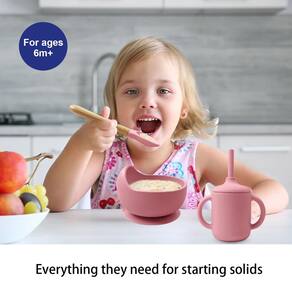 - Suprimentos de desmame para bebês: nosso babador de silicone é projetado com um bolso mais profundo e resistente, o que o torna altamente eficaz na captura de alimentos caídos e fácil de limpar. O design circular ajustável é particularmente suave na pele do seu bebê. Nosso copo de treinamento é habilmente trabalhado para caber confortavelmente nas pequenas mãos e boca do seu bebê, protegendo seus dentes em desenvolvimento. Além disso, o canudo é equipado com uma função à prova de derramamento, ajudando os bebês na transição da amamentação e promovendo o consumo independente.