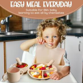 Características: Presente atencioso: Você pode dar de presente este conjunto de desmame para seus familiares, parentes, amigos, colegas e vizinhos que têm bebês em casa, para trazer mais conveniência enquanto expressa seu carinho e amor. Leve e portátil: Estes suprimentos de silicone para alimentação infantil são leves e pequenos, fáceis de transportar para uso, sem ocupar muito espaço de armazenamento ou causar carga. Especificações: Material: silicone, metal. Cor: cor nogueira, bege, cinza esfumaçado Tamanho: conforme mostrado nas imagens. A embalagem inclui: 24 conjuntos de suprimentos de silicone para alimentação de bebês. Observações: Medição manual, considere pequenos erros no tamanho. A cor pode existir uma pequena diferença devido a diferentes telas. - Conjunto de alimentação de silicone para bebês: o pacote vem com 24 conjuntos de conjunto de alimentação de silicone em 3 cores diferentes de nogueira, bege, cinza esfumaçado, 8 peças por conjunto, e cada conjunto contém um prato dividido por sucção, um par de colheres e garfos, um babador de silicone ajustável, uma tigela de comida complementar, um copo de lanche, uma colher de silicone e um canudo, que cobre os utensílios básicos para comida de bebê, ajudando a transição do seu bebê to self eating - Seguro de usar: nossos suprimentos de desmame para bebês são feitos de material de silicone de qualidade, sem BPA, PVC e ftalatos, seguros e confiáveis de usar sem se preocupar em machucar a pele do bebê, eles são macios e suaves, leves e resistentes a quedas, não desbotam ou quebram facilmente, e podem ser aplicados por um longo tempo com confiança - Fácil de limpar: estes suprimentos para alimentação própria para bebês são fáceis de lavar e podem ser colocados na lava-louças para facilitar a limpeza, para que você não sinta mais dor de cabeça por causa de muitos utensílios de mesa, economizando tempo e esforço; além disso, eles podem suportar altas temperaturas, adequados para uso no micro-ondas - Design de alça dupla: estes lindos copos de lanche para bebês apresentam alças duplas com um design fosco, o que pode aumentar o atrito entre os dedos do bebê e a alça, permitindo que o bebê o segure firmemente, ajudando-o a manter o bom hábito de comer sozinho - Design de sucção dividida: as tigelas e pratos deste conjunto de alimentação para bebês são projetados com um design de sucção, evitando efetivamente que os pratos e tigelas escorreguem na mesa, apresentando um bom efeito antiderrapante, que pode reduzir melhor a bagunça e manter seu bebê mais independente na hora das refeições