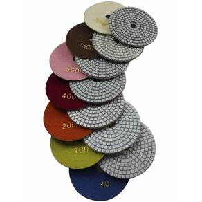 Konfor oferece almofadas de polimento de diamante industrial e uma variedade de acessórios de ferramentas. Nossos produtos com alto teor de diamante, cortam rápido e agressivamente. As almofadas podem ser usadas apenas em molhado. Este pacote contém 7 peças de resina de 100 mm (mais durável do que a almofada de polimento de grau padrão) Almofada de polimento de diamante premium para pedra de travertino de granito de concreto. Incluído na embalagem: 1 x almofadas de polimento de gramatura 50 1 x almofada de polimento de gramatura 100 1 x almofada de polimento de gramatura 200 1 x almofadas de polimento de grão 400 1 x almofadas de polimento de gramatura 800 1 x almofadas de polimento de gramatura 1500 1 x almofada de polimento de gramatura 3000. Também vendemos o mesmo grão para conjuntos de 7 peças, como grão 50 de 7 peças ou grão 100 de 7 peças, você pode fazer comentários sobre o grão que deseja ao comprar e escolha ENVIAR POR VENDEDOR NÃO FBA. Instruções: Instale o suporte de borracha no moedor manual angular de velocidade variável. Prenda o lado do laço de fecho aderente da almofada de polimento ao lado do laço de fecho aderente, para que eles formem uma ligação firme. Certifique-se de que a almofada esteja centralizada no bloco de apoio. Se não estiver centralizado, encurtará a vida útil das almofadas de polimento. Para melhores resultados e sua segurança: Use luvas protetoras para os olhos enquanto opera o moedor. Também adicione um pouco de água à superfície quando você operar. - Ideal para polir concreto, granito, mármore, pedra, travertino e terraço - Agressivo e durável, feito com pó de diamante de qualidade impregnado em resina - fecho aderente flexível com 3 mm de espessura, aplicações molhadas. - 7 peças de almofadas de polimento molhadas de 10 cm (inclui grãos 50, 100, 200, 400, 800, 1500, 3000) - RPM máxima: 4500 RPM. Neve use com moedor de alta velocidade