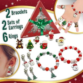 - Sortimento deslumbrante: inclui uma variedade de 6 anéis com temas natalinos, 2 pulseiras e 2 brincos de encaixe combinando. Tornando-o o presente ideal para meninas, proporcionando horas de diversão e brincadeiras imaginativas.