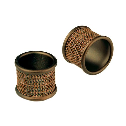 O conjunto de argolas para guardanapos da Inter Design é ideal para incrementar a decoração de sua mesa com força e elegância. São quatro anéis em aço, cor de bronze, revestidos com uma elegante malha de PVC de alta qualidade e durabilidade, que combinam com decorações mais rústicas ou clássicas. Dimensões: 4cm x 4,5cm altura x diâmetro . Material: Aço e PVC Marca: Inter Design