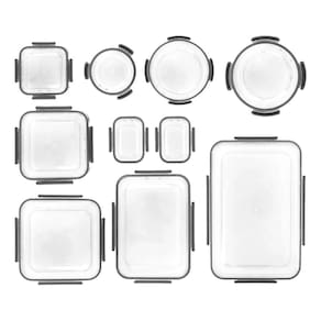 100% à prova de vazamentos; hermético Feito de plástico Tritan transparente sem BPA Resistente a manchas e odores Adequado para microondas, freezer e lava-louças Conjunto de 20 peças - 10 tampas e 10 bases de recipientes,