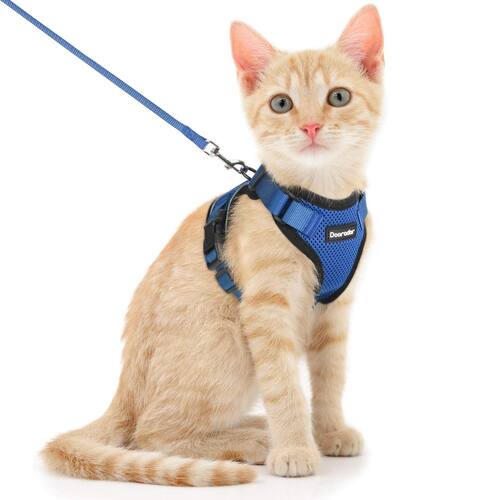 Dooradar Arnês e coleira para gatos para caminhadas - Referência de tamanho – PP (circunferência do pescoço: 21,5 cm – 28 cm, circunferência do peito: 34,3 cm – 40,6 cm), P (circunferência do pescoço: 28 – 34,7 cm, circunferência do peito: 45,7 cm – 50,8 cm), meça o seu gato e consulte a tabela de tamanhos antes de fazer o pedido. A circunferência da cabeça do seu gato deve ser de pelo menos 25 cm, caso contrário, seu gatinho pode escorregar. Se o seu gato estiver entre tamanhos, escolha o tamanho menor. - Material super macio e respirável - Feito de tecido de malha de ar leve, macio e respirável, com borda macia e almofada de esponja que pode evitar lesões e fornecer boa proteção e conforto perfeito. Este peitoral para gatos pode ser utilizado em todas as estações, independentemente do clima quente ou frio. O forro de cabelo antiaderente e a respirabilidade permitem que você não se preocupe com problemas de pele de gato - Tira refletiva brilhante e anéis em D resistentes – A tira refletiva torna o gato visível em condições de pouca luz e melhora a segurança ao caminhar à noite. Este peitoral para gatos ao ar livre possui um anel em D resistente na parte de trás para prender à coleira. Ele pode distribuir uniformemente a pressão de tração da coleira pelo peito e ombros, o que é menos pressão de puxar no pescoço frágil do seu animal de estimação. Leve e sem pressão, permitindo que eles joguem mais livremente e alegre - Totalmente ajustável e fácil de usar – Este cinto de segurança para gatos tem 4 fivelas ajustáveis e 2 fivelas de liberação rápida. Tanto a alça do pescoço quanto a alça torácica são completamente ajustáveis. Fácil de calçar e descalçar. O design ajustável é muito adequado para gatos em crescimento. (Dicas: o arnês deve ser confortável o suficiente para você encaixar um dedo entre as alças e qualquer parte do corpo do seu gato) - Arnês para gatos à prova de fuga – Nosso peitoral pode envolver os gatos confortavelmente em 360 graus. Juntamente com uma correia grossa e firme, não é fácil de quebrar, proteção múltipla, faz o gato não conseguir escapar. Adequado para caminhadas diárias, corrida, treinamento e qualquer recreação ao ar livre. Com o arnês Dooradar à prova de fugas para gatos, é fácil levar o gatinho para um lugar estranho para viajar, e não precisa mais se preocupar com o gato se perder