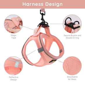 - ?Malha respirável ?O peitoral para filhotes é feito com tecido de malha macia, é leve, mas resistente, fácil de limpar e de secagem rápida. O design do arnês faz com que a pressão de tração seja distribuída ao corpo para evitar asfixia.