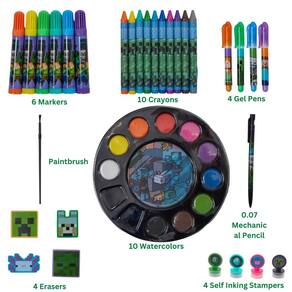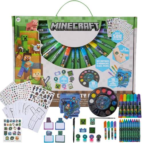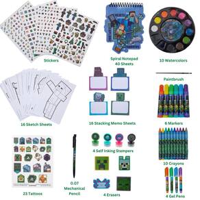 O conjunto de arte infantil Minecraft Creativity Fun é um pacote fantástico que oferece infinitas possibilidades criativas para jovens entusiastas de Minecraft. Este conjunto de atividades é embalado com uma ampla variedade de materiais artísticos, incluindo 984 adesivos, 23 tatuagens, 16 folhas de esboço, 10 giz de cera, 6 marcadores, 4 carimbos autotintados, 4 canetas de gel, 16 folhas de notas empilháveis, 4 borrachas em forma, 10 aquarelas, um lapiseira, um pincel e um bloco de notas em espiral. Com uma extensa coleção de adesivos com tema de Minecraft, incluindo personagens populares como o trepador, lobo e porco, as crianças podem adornar suas garrafas de água, projetos de arte, cadernos, cartões ou mochilas com seus amados elementos do Minecraft. O conjunto também inclui tatuagens temporárias que são fáceis de aplicar e têm poder de permanência duradouro, permitindo que as crianças exibam orgulhosamente seus personagens favoritos do Minecraft em suas mãos, braços ou pernas. Projetado para inspirar a criatividade, este conjunto vem com um bloco de desenho com tema Minecraft, carimbos e giz de cera que as crianças vão adorar usar para desenhar e fazer artesanato em casa e em movimento. Quer estejam recriando cenas do jogo ou criando sua obra de arte exclusiva inspirada no Minecraft, este conjunto de arte oferece infinitas horas de entretenimento. O conjunto de arte divertido para crianças Minecraft Creativity é um presente perfeito para fãs de Minecraft em várias ocasiões, incluindo aniversários, Natal, volta às aulas ou simplesmente como uma surpresa para jovens artistas. Recomendado para crianças a partir de 3 anos que têm uma paixão pelo popular videogame Minecraft. - Conjunto de atividades MINECRAFT – O conjunto completo inclui 984 adesivos, 23 tatuagens, 16 folhas de esboço, 10 giz de cera, 6 marcadores, 4 selos de tinta automática, 4 canetas de gel, 16 folhas de memorandos empilháveis, 4 borrachas em forma, 10 aquarelas, um lápis mecânico para desenhar, um pincel e um bloco de notas espiral (40 folhas). - Muitos adesivos de minecraft: o conjunto inclui 984 adesivos com trepadeira, lobo, porco e todos os seus personagens favoritos. Cole-os em garrafas de água, projetos de arte, cadernos, cartões ou mochilas. - Inclui tatuagens temporárias – Fácil de aplicar e de longa duração, as crianças podem usar seus personagens favoritos diretamente em suas mãos, braços ou pernas. - Brinquedo criativo – Meninas e meninos vão adorar usar o bloco de desenho temático do Minecraft, carimbos e giz de cera para desenhar em casa, na escola e em movimento. - Um presente perfeito para fãs de Minecraft: é ideal para festas de aniversário temáticas de Minecraft, para o Natal e feriados, para volta às aulas ou como um presente a qualquer momento para crianças a partir de 3 anos que amam os populares videogames sonoros!