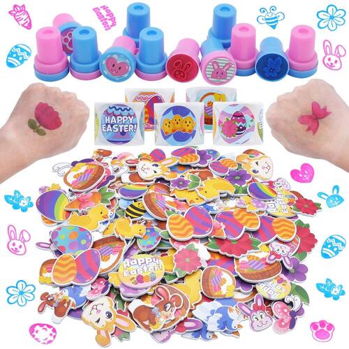 - Conjunto abrangente. Nosso conjunto DIY de ovos de Páscoa inclui 5 rolos de adesivos, 24 carimbos, mais de 280 adesivos de espuma, 120 tatuagens temporárias.