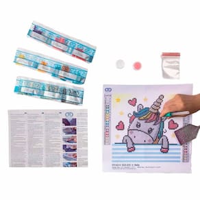 Conjunto de Artes Infantil - Dotzies - Uni Baby 1 - Fun Divirta-se: o Conjunto de Artes Dotzies vem com tudo o que você precisa para completar uma obra inspirada em um Unicórnio Baby. Dotzies é um jeito criativo de artesanato em que desenhos incríveis são criados com pedras adesivas inspiradas em diamantes. Um kit de Dotzies produzirá um efeito brilhante. Rápido e fácil de fazer, o resultado final é um design de pintura de diamante espetacular! Detalhes: • No melhor estilo “DIY” (Do It Yourself - Faça Você Mesmo), as crianças podem criar seus próprios conjuntos de artes com pedrinhas Dotz • As pedras de diamante são brilhantes e resistentes, garantindo que os desenhos fiquem bonitos e durem por muito tempo • O conjunto inclui tudo o que é necessário para começar a criar, incluindo um quadro pré-impresso, pedras de diamante, bandejas e caneta de aplicação • O kit contém: 01 peça de tecido impresso em cores de alta qualidade, tamanho 31 x 31 cm, 01 caneta Diamont Dotz Stylus, 01 bandeja, 01 pote de cera, 01 grip ergonômico e 01 pacote Diamond Dotz (22g) com 18 cores Como funciona: • Com a caneta de aplicação pegue um Dotz e coloque no espaço adesivado correspondente Informações: • Produto: Conjunto de Atividades Dotzies Unicórnio Baby com 2400 dotz • Marca: Fun Divirta-se • Coleção: Dotzies • Linha: Diamond Dotz • Serie: 1 • Tipo: Conjunto de Artes Infantil • Categoria: Artes e Atividades • Estilo de brincar: DIY (Faça você mesmo) • Nível: Iniciantes • Peças: 2400 Dotz • Tamanho: - Tecido: 31 x 31 cm - Área do desenho: 23 x 23 cm • Conteúdo - 01 peça de tecido - 01 caneta de aplicação Diamond Dotz Stylus - 01 bandeja de artesanato - 01 pote de cera - 01 grip ergonômico - 01 Pacote de pedrinhas Diamond Dotz (22g) com 18 cores • Recomendação: para crianças a partir de 06 anos de idade Especificações: • Modelo: Diamond Dotz U Baby com 2.400 Dotz • Referência: F0163-0 • Código de Barras: 7908489408290 • Embalagem (C x A x L): 10 x 33 x 07 cm • Embalagem (Peso): 0.125 kg • Material / Composição: Plástico PP e Silicone • Registro: 02115-000 / OCP 0061 • Certificado: Órgãos Autorizados - OCP´S (Organismos de Certificação de Produtos) Aviso: • As imagens são meramente ilustrativas • Os pesos, tamanhos e medidas são aproximados • As cores e estampas dos produtos podem ter variações • As informações são de responsabilidade do fabricante ou fornecedor