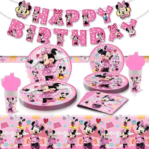 - ?Design exclusivo?Nosso conjunto de suprimentos de festa de aniversário Minnie apresenta estampas brilhantes e cores vibrantes, criando a atmosfera mais festiva para você e seus convidados. Design moderno e personagens emocionantes certamente serão amados por crianças e adultos!