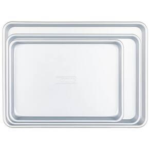 Viking Conjunto de assadeiras antiaderentes de 3 peças, bandejas de biscoito de aço aluminizado, seguro para forno, 33, 38 e 45 cm, prata