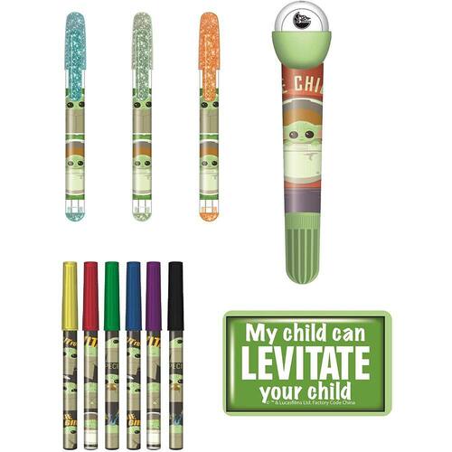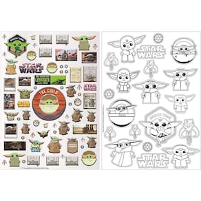 Este conjunto completo de arte temático Madalorian Baby Yoda inclui: 6 marcadores, 3 canetas de gel, uma almofada de tinta, um carimbo de rolo com marcador, uma folha de adesivo inchado de 5 x 7 polegadas, uma almofada de rabisco espiral de 6 x 4 polegadas, uma folha de adesivo de 5 x7 colorida, e um grande personagem Baby Yoda color-in. Perfeito para viagens, viagens de carro, passeios de avião, atividades de arte em casa – sempre que você quiser manter as mãos pequenas ocupadas com seu personagem favorito! As crianças podem colorir, desenhar e adesivo em movimento com a caixa de transporte yoda verde legal moldada. As crianças podem decorar cadernos, pastas, garrafas de água ou outros artesanatos de papel com os adesivos puffy e color-in Baby Yoda. Há até um personagem stand-up Baby Yoda para colorir! É ideal para festas de aniversário temáticas de Star Wars, para Natal e feriados, ou como um presente a qualquer hora para crianças de 4 anos que amam o Mandalorian! Todas as peças do set têm um tema Baby Yoda.