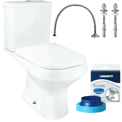 Conjunto de Bacia com Caixa Acoplada Like Branco + Assento e Acessórios de Instalação - 7720004 - LORENZETTI