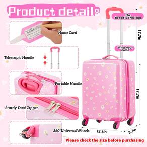 - Capacidade espaçosa: nossa bagagem tem design de dupla face, bonita e cheia, a bagagem tem aproximadamente 20 x 13 x 8,6 polegadas, a mochila tem aproximadamente 17 x 12,6 x 6 polegadas, a lancheira tem aproximadamente 9 x 7 x 4 polegadas e a bolsa de caneta tem aproximadamente 8,7 x 3,7 x 2,8 polegadas, o suficiente para as necessidades de viagem de seu filho