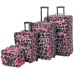 Rockland Conjunto de Malas de viagem, 4 peças.), F105-PINKGIRAFF - Rodas. - 48 cm, 61 cm, 71 cm na vertical, bolsa 30,5 cm. - Totalmente forrado e expansível. - Alças internas retráteis.