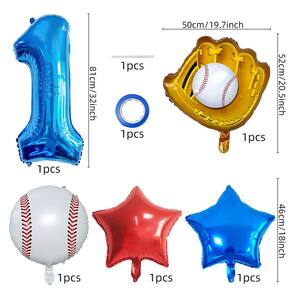 Tema de beisebol esportivo: este conjunto empolgante apresenta balões metalizados em forma de beisebol, além de um grande balão número 1 e balões em forma de estrela, perfeitos para criar uma atmosfera esportiva em sua festa de aniversário. Material de alumínio durável: feitos de papel alumínio de alta qualidade, esses balões são duráveis e flutuam por um longo período, ideais para inflação de hélio e ar. Perfeito para aniversários de meninos: com designs temáticos de beisebol e esportes, este conjunto é perfeito para um entusiasta de esportes ou uma festa de aniversário de um garoto com um toque esportivo. Vários tamanhos de balões: o conjunto inclui balões que variam de 46 cm a 81 cm, permitindo que você crie uma configuração de decoração completa e atraente para o seu evento. Fácil de inflar e configurar: esses balões são fáceis de inflar com hélio ou ar e, com seus designs divertidos e esportivos, facilitarão a preparação da sua festa.