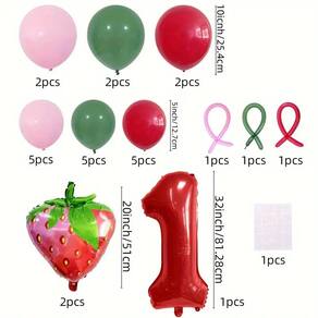Tema encantador de morango: este conjunto de balões apresenta adoráveis balões de alumínio em forma de morango, combinados com uma variedade de balões de látex pastel em rosa e verde, perfeitos para uma doce festa de aniversário com tema de frutas. Materiais de alta qualidade: feitos de papel alumínio premium e látex, esses balões são duráveis, fáceis de inflar e projetados para permanecerem inflados para decorações de festas duradouras. Ideal para primeiros aniversários: o grande balão número 1 combinado com balões de látex de morango e cor pastel o torna a configuração perfeita para o primeiro aniversário de uma menina ou uma festa com tema de frutas. Várias opções de tamanho: O balão de alumínio número 1 varia de 12 a 81 cm de tamanho, oferecendo grande versatilidade para decoração ou oportunidades fotográficas. Fácil de configurar: encha esses balões de forma rápida e fácil para uma exibição impressionante e digna do Instagram em sua festa. Crie o cenário perfeito para comemorações de aniversário e fotos memoráveis.