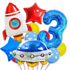 Design com tema espacial: este emocionante conjunto de balões inclui um foguete, OVNI e balões metalizados em forma de estrela, bem como um grande balão azul número 3, perfeito para uma festa de aniversário com tema espacial. Conjunto completo de balões: inclui uma variedade de balões de látex coloridos e balões metalizados temáticos, oferecendo tudo o que você precisa para uma decoração de aniversário dinâmica e de outro mundo. Materiais duráveis: feitos de papel alumínio e látex de alta qualidade, esses balões são projetados para fornecer decoração duradoura e cores vibrantes em todo o evento. Perfeito para festas infantis: ideal para uma festa com tema espacial, astronauta ou foguete, este conjunto de balões adicionará um toque divertido e criativo à festa de aniversário de seu filho. Configuração fácil: encha e organize os balões como um buquê, peça central ou arco, criando uma exibição visual impressionante que encantará os jovens convidados e dará um toque mágico à festa.