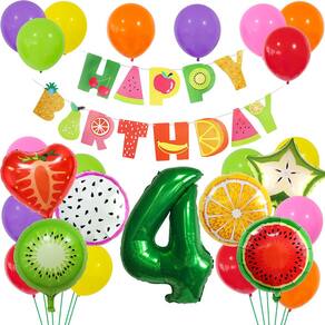 Tema colorido de frutas: apresenta balões de alumínio vibrantes com tema de frutas, incluindo melancia, kiwi e morango, junto com um balão número 4 e um divertido banner de “Feliz Aniversário”, perfeito para uma celebração de festa frutada. Material durável: feitos de papel alumínio e látex de alta qualidade, esses balões são projetados para durar e manter sua forma e cor durante todo o evento. Ideal para festas de 4 anos: perfeito para comemorar o 4º aniversário de uma criança com uma festa animada e colorida com tema de frutas que certamente empolgará os pequenos. Decoração de festa completa: este conjunto inclui uma variedade de balões e um banner de “Feliz Aniversário”, fornecendo todas as decorações necessárias para criar uma atmosfera festiva para sua celebração. Tamanhos versáteis: os balões variam de 30 cm a 80 cm, permitindo que você decore espaços grandes e pequenos de acordo com o tema da sua festa.