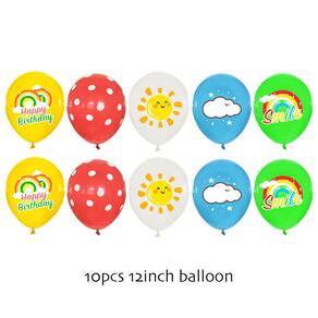 Design divertido de arco-íris, nuvens e sol: o conjunto inclui balões com desenhos alegres de arco-íris, nuvens e sóis, tornando-o ideal para festas de aniversário infantis ou celebrações temáticas. Balões brilhantes e coloridos: apresenta uma mistura de cores vibrantes, incluindo amarelo, verde, azul e vermelho, perfeitos para criar uma atmosfera animada e feliz em qualquer evento. Material de látex de alta qualidade: feito de látex durável, garantindo que os balões sejam duradouros e seguros para as crianças se divertirem durante a festa. Perfeitos para eventos infantis: ideais para aniversários, celebrações escolares ou festas temáticas de arco-íris, esses balões dão um toque divertido a qualquer ocasião. Fácil de inflar: simples de inflar com ar ou hélio, tornando a configuração rápida e fácil para qualquer necessidade de festa ou decoração.