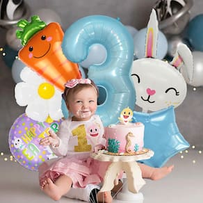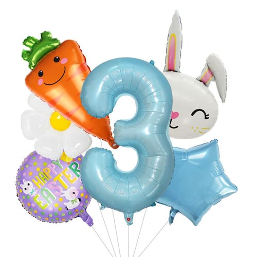 Conjunto de balões com tema de Páscoa: comemore a temporada com um divertido conjunto de balões de Páscoa com um coelho, cenoura, flor e um balão número “3", ideal para festas de Páscoa ou celebrações da primavera. Material de alumínio de alta qualidade: feitos de papel alumínio durável, esses balões são projetados para permanecerem inflados por muito tempo, criando uma atmosfera alegre durante todo o evento. Perfeito para festas de Páscoa: este conjunto é perfeito para caçar ovos de Páscoa, reuniões familiares e sessões de fotos de férias, adicionando um toque festivo extra às suas celebrações. Design brilhante e colorido: o design colorido inclui tons pastel de azul, laranja e roxo, tornando-o uma combinação perfeita para eventos temáticos de primavera e festas de aniversário infantis. Fácil de inflar e exibir: simples de inflar com hélio ou ar, esses balões estão prontos para uso, garantindo uma experiência de decoração descomplicada para a configuração da festa de Páscoa.