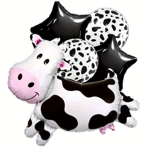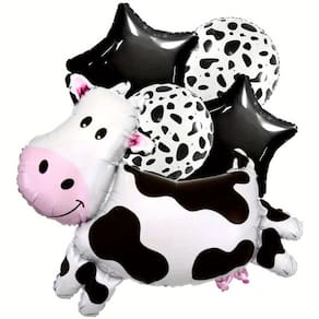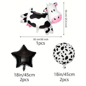 Adorável tema de fazenda: projetado com lindos padrões de vacas de desenho animado e balões estelares em preto e branco combinando para aprimorar sua fazenda ou celebração no estilo ocidental. Material de alumínio premium: feito de papel alumínio de alta qualidade que é durável, reutilizável e fácil de inflar com hélio ou ar para uma decoração duradoura. Conjunto completo: inclui 5 peças — 1 balão grande de alumínio em forma de vaca, 2 balões de estrela preta e 2 balões redondos com estampa de vaca para uma aparência coordenada. Fácil de usar: as válvulas autovedantes tornam a inflação e a deflação rápidas e simples, perfeitas para criar fundos de festa dignos de fotos. Perfeito para todas as ocasiões: ideal para aniversários, casamentos, festivais, chás de bebê, festas em celeiros ou celebrações ao ar livre com temas agrícolas.