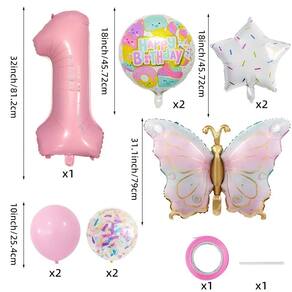 Sweet Treats & Butterfly Design: este adorável conjunto apresenta um balão rosa de papel alumínio ao lado de balões com tema de donuts e granulados, perfeito para criar uma atmosfera divertida e vibrante de festa de aniversário. Material de alta qualidade: feitos de papel alumínio premium, esses balões são duráveis e duradouros, perfeitos para a inflação de ar e hélio para mantê-los flutuando durante o evento. Ideal para aniversários de crianças: o charmoso balão “Feliz Aniversário” combinado com o divertido design de rosquinha o torna perfeito para o aniversário de uma criança, adicionando um toque doce a qualquer celebração. Tamanho perfeito para exibições de festas: o conjunto inclui balões que variam de 25 cm a 81 cm, fornecendo a combinação certa de tamanhos para decorar qualquer local, de espaços íntimos a grandes áreas de festas. Fácil de inflar e configurar: esses balões de alumínio podem ser facilmente inflados com ar ou hélio e vêm com tudo o que você precisa para uma configuração rápida e simples para o seu evento.