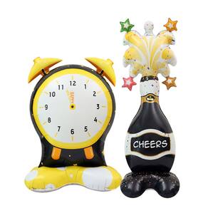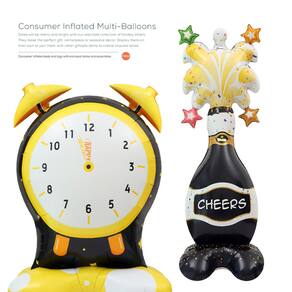 Conjunto exclusivo de balões comemorativos: inclui uma grande garrafa de champanhe e balões de alumínio em forma de relógio com acabamento metálico, perfeitos para celebrações festivas e festas de contagem regressiva. Material de alumínio premium: feitos de papel alumínio de alta qualidade, esses balões são duráveis, reutilizáveis e projetados para manter a forma para exibição prolongada. Perfeito para várias ocasiões: ideal para a véspera de Ano Novo, aniversários, formaturas e cenários de fotos de festas. Design 4D atraente: a estrutura vertical 3D adiciona profundidade e emoção à sua configuração de decoração, tornando-a uma peça de destaque em qualquer evento. Fácil inflação e configuração: simples de inflar com ar ou hélio; a base estável permite a exibição autônoma em pisos, palcos ou mesas de sobremesas.