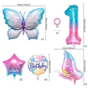 Design mágico de borboletas e estrelas: este conjunto encantador inclui um lindo balão de papel alumínio em gradiente e balões de alumínio em forma de estrela, perfeitos para criar uma atmosfera de aniversário extravagante e colorida. Material de qualidade premium: feitos de papel alumínio durável (mylar), esses balões são duradouros, o que os torna perfeitos para inflação de hélio ou ar e permanecem inflados durante toda a celebração. Perfeitos para festas infantis: ideais para aniversários infantis ou chás de bebê, os divertidos balões de “Feliz Aniversário” e o design vibrante de borboletas darão um toque alegre a qualquer evento especial. Variedade de tamanhos de balões: com balões que variam de 45 cm a 102 cm, este conjunto oferece uma mistura de tamanhos para criar uma exibição de decoração atraente para festas de qualquer escala. Configuração fácil: os balões são fáceis de inflar e vêm com tudo o que você precisa para uma configuração de festa rápida e sem complicações, dando a você mais tempo para aproveitar seu evento.