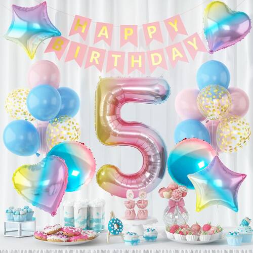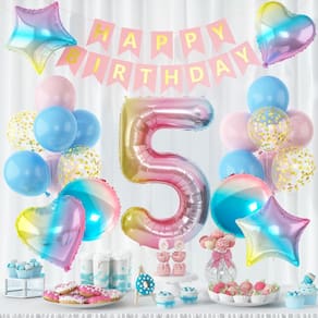Design vibrante em gradiente: este conjunto de balões apresenta um impressionante balão numérico de gradiente “5" junto com balões em forma de coração e estrela em tons pastel, perfeitos para uma celebração alegre e alegre. Material de alumínio de alta qualidade: feitos de material de alumínio durável, esses balões são projetados para durar durante todo o evento, oferecendo opções de inflação de hélio e ar. Perfeito para festas de aniversário: ideal para o aniversário de uma criança, chá de bebê ou qualquer celebração temática, este conjunto de balões trará energia divertida e vibrante à sua festa. Decorações festivas e divertidas: os balões pastel coloridos com um efeito gradiente exclusivo adicionam uma atmosfera festiva e são perfeitos para aprimorar a decoração de qualquer aniversário ou evento especial. Fácil de configurar: rápidos e simples de inflar, esses balões de alumínio são fáceis de exibir e tornarão seu processo de decoração de festas fácil e agradável.