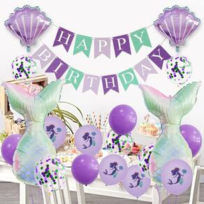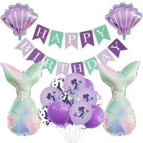 🧜? Conjunto completo de festa de sereia — inclui 23 peças com 2 balões grandes de alumínio com cauda de sereia, 2 balões de concha, balões de látex estampados e um banner de “Feliz Aniversário” para uma configuração completa com o tema do oceano. Cores vibrantes do oceano — Apresenta tons sonhadores de roxo, verde-azulado e verde menta que trazem uma atmosfera subaquática suave e mágica a qualquer festa. Materiais duráveis e seguros — Feitos de papel alumínio espesso e látex premium, não tóxicos, duráveis e adequados para inflação de ar e hélio. Fácil de montar — Simples de configurar e perfeito para decorar paredes, mesas de sobremesas ou como pano de fundo para fotos, elevando instantaneamente a decoração da festa. Perfeito para muitas ocasiões — Ótimo para festas de aniversário de sereias, celebrações no fundo do mar, eventos temáticos de praia e chás de bebê, criando uma experiência de conto de fadas.