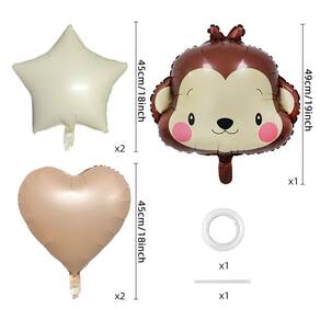 Design adorável de macaco — apresenta um balão sorridente com cara de macaco com balões de coração e estrela bege e caramelo combinando, criando uma atmosfera calorosa e divertida de selva. Material de alumínio durável — Feito de filme de alumínio premium, resistente a vazamentos e estouros, garantindo uma tela duradoura quando inflado com ar ou hélio. Cores neutras encantadoras — Tons suaves de bege e caramelo se misturam perfeitamente para uma decoração elegante e divertida, adequada para celebrações de meninos e meninas. Fácil de inflar e reutilizar — Cada balão inclui uma válvula autovedante; simples de inflar e esvaziar para armazenamento, permitindo vários usos em eventos. Perfeito para várias ocasiões — Ideal para aniversários com temas de animais, chás de bebê, festas internas, cenários fotográficos ou áreas de recreação infantil.
