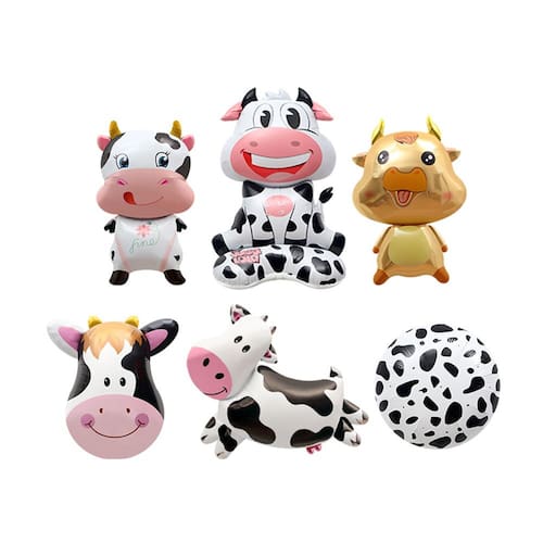 Design de vaca adorável — inclui seis estilos exclusivos de vacas de desenho animado em tons de preto, branco, rosa e dourado, adicionando um divertido tema de fazenda à decoração de sua celebração. Material de alumínio durável — Feito de filme de alumínio de alta qualidade que é leve, não tóxico e reutilizável; suporta inflação de ar e hélio para uso duradouro. Forma 3D em pé — apresenta designs independentes que parecem realistas e divertidos, tornando-os perfeitos para expositores de mesa ou decorações de piso. Brilhante e atraente — A superfície brilhante com padrões vívidos de vacas a torna ideal para fotografia, cenários de festas ou eventos para crianças. Perfeito para várias ocasiões — Ótimo para festas temáticas de fazenda, aniversários, chás de bebê, festivais de animais ou cabines de fotos com uma atmosfera campestre.