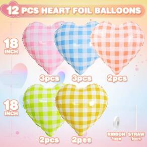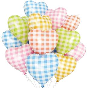 Design charmoso de guingão: apresenta um lindo padrão xadrez pastel em tons de rosa, azul, amarelo, verde e laranja, perfeito para criar uma atmosfera calorosa e alegre. Material de folha durável: feito de papel alumínio premium, leve e forte, garantindo uma inflação duradoura com ar ou hélio. Tamanho grande de 18 polegadas: design grande e atraente em forma de coração, ideal para destacar cantos de festas, mesas de sobremesas ou configurações de fotos românticas. Fácil de inflar e exibir: o design autovedante permite uma inflação rápida; pode ser amarrado com cordas ou fita adesiva para uma decoração versátil. Perfeito para qualquer celebração: ótimo para casamentos, aniversários, Dia dos Namorados, aniversários e festas temáticas com um toque doce e alegre.