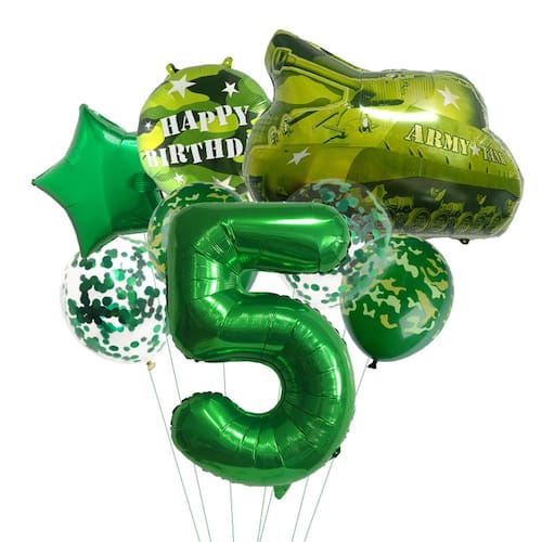 Tema militar de tanque e camuflagem: apresenta um balão de alumínio moderno do exército, balões com estampa de camuflagem e um papel alumínio número 5, perfeito para criar uma atmosfera de inspiração militar para festas de aniversário de crianças. Balões metalizados de alta qualidade: feitos de papel alumínio durável, esses balões são projetados para permanecerem inflados e manter suas cores vibrantes durante todo o evento, adicionando diversão e emoção a qualquer celebração. Ideal para festas militares e militares: perfeito para crianças que amam tanques, temas militares ou decoração militar, este conjunto dá um toque divertido a qualquer aniversário ou festa temática. Conjunto completo de festas: inclui uma variedade de balões com temas militares e camuflados, tornando a configuração da festa rápida e fácil, ao mesmo tempo em que dá ao seu evento uma aparência profissional e divertida. Fácil de configurar: simples de inflar e arrumar, esses balões são fáceis de montar, o que os torna perfeitos para pais e organizadores de festas que desejam uma experiência de decoração sem complicações.