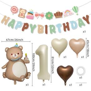 Adorável tema de urso: este encantador conjunto de balões apresenta um lindo balão de urso segurando um bolo, balões em forma de coração e um banner colorido de “Feliz Aniversário”, perfeito para uma celebração de primeiro aniversário com inspiração vintage. Balões metalizados de alta qualidade: feitos de material de alumínio durável, esses balões vêm em tamanhos que variam de 45 a 100 cm, garantindo que permaneçam inflados e vibrantes durante toda a festa. Conjunto completo de decoração de festa: o conjunto inclui todas as decorações essenciais — balão de urso de alumínio, balões em forma de coração e uma faixa de “Feliz Aniversário” — criando uma atmosfera de festa perfeita. Ideal para o primeiro aniversário do bebê: este conjunto foi projetado para se adequar a festas de primeiro aniversário, com seu design divertido atraente para crianças e adultos, trazendo calor e alegria ao evento. Fácil configuração e inflação: encha com hélio ou ar para decorar rapidamente qualquer espaço, proporcionando um cenário divertido e colorido para fotos e celebrações de festas.