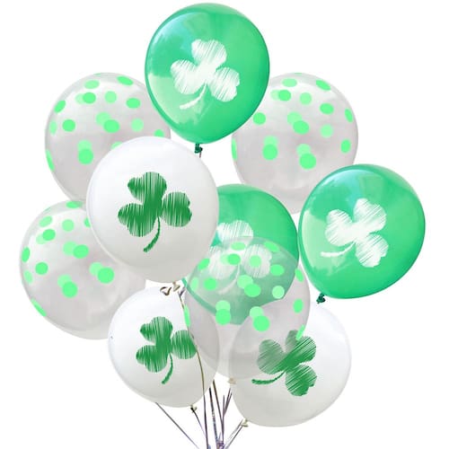 Design Lucky Shamrock: apresenta estampas de trevo verdes brilhantes e padrões de bolinhas, adicionando charme festivo à sua configuração de festa do Dia de São Patrício. Cores vibrantes de verde e branco: os tons clássicos irlandeses criam uma atmosfera alegre para desfiles, reuniões ou eventos temáticos. Material de látex durável: feito de látex de alta qualidade, seguro, ecológico e adequado para inflação com ar ou hélio. Fácil de decorar: perfeito para centros de mesa, entradas ou buquês de balões; fácil de combinar com outras decorações de São Patrício. Ideal para celebrações: ótimo para residências, escolas, escritórios ou festivais com tema irlandês para compartilhar boa sorte e momentos de alegria.