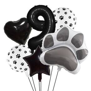 Conjunto de balões com tema de animal de estimação: este conjunto de balões de 7 peças apresenta um design com estampa de pata de cachorro, incluindo um grande balão de alumínio número 9, balões em forma de coração e estrela, perfeitos para uma festa de aniversário com tema de animal ou animal de estimação. Material de alumínio durável: feitos de papel alumínio de alta qualidade, esses balões são feitos para durar, com um acabamento brilhante que adiciona um toque vibrante à decoração da sua festa, garantindo uma exibição duradoura. Ideal para amantes de animais de estimação: perfeito para festas infantis ou para quem adora animais, especialmente animais de estimação, este conjunto cria uma atmosfera divertida e divertida para uma comemoração de aniversário memorável. Kit completo de decoração de festa: este conjunto inclui tudo o que você precisa para decorar seu espaço para eventos, desde o balão número 9 até a impressão da pata e os balões estelares, tornando a configuração da sua festa rápida e fácil. Fácil inflação e configuração: esses balões podem ser inflados com hélio ou ar, e suas válvulas autovedantes simplificam a configuração, para que você possa se concentrar em aproveitar a festa.