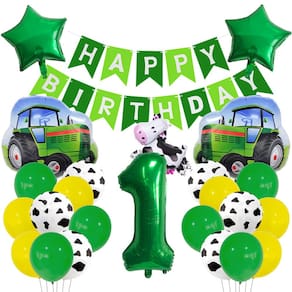 Festa de aniversário com tema de fazenda: este vibrante conjunto de balões apresenta trator agrícola e balões metalizados em forma de vaca, além de um balão verde com o número “1", perfeito para uma festa temática de fazenda ou curral. Balões de alumínio duráveis: feitos de papel alumínio de alta qualidade, esses balões são projetados para permanecerem inflados durante todo o evento, proporcionando uma decoração duradoura. Desenhos divertidos e divertidos: com balões de látex com estampa de vaca e balões metalizados com tema de veículos agrícolas, este conjunto adiciona um toque divertido ao seu espaço de festa. Ideal para aniversários de crianças. Configuração completa da festa: inclui um banner de “Feliz Aniversário”, balões em forma de trator e vaca e balões de látex verde e amarelo brilhantes para um tema colorido de fazenda. Perfeito para primeiros aniversários: com seu design inspirado na fazenda, este conjunto é ideal para comemorar um primeiro aniversário ou qualquer evento com tema de fazenda para meninos e meninas.