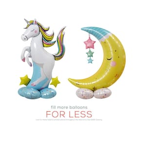 Design encantador de unicórnio e lua: este conjunto inclui dois grandes balões de alumínio, com um unicórnio colorido e uma lua com estrelas, ideais para adicionar um toque extravagante a qualquer celebração. Perfeitos para festas de aniversário: esses balões são uma adição empolgante às festas de aniversário das crianças, criando uma atmosfera mágica e divertida com suas cores vivas e designs divertidos. Folha de alumínio de alta qualidade: feitos de papel alumínio durável, esses balões são feitos para durar, resistentes à deflação e perfeitos para uso interno e externo. Grandes e atraentes: o unicórnio mede 113 x 90 cm e a lua 48 x 122 cm, o que os torna uma decoração de destaque em seu espaço de festa, fotos ou quartos infantis. Fácil de inflar e usar: Simples de inflar com ar ou hélio, esses balões podem ser configurados rapidamente para uma aparência mágica, tornando-os uma opção de decoração conveniente e divertida para vários eventos.