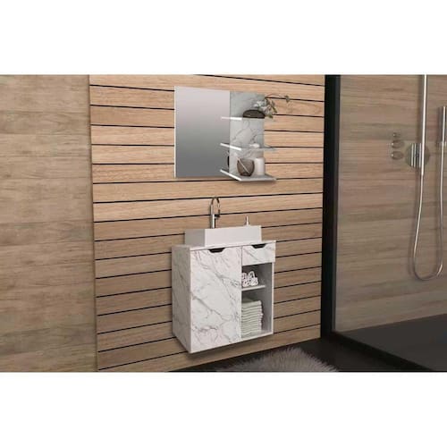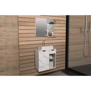 Conjunto de Banheiro Armário c/ Espelho BN3608 e Balcão Suspenso BN3605 c/ Cuba Pia BN3600 60cm cor Mármore Branco - Tecno Mobili
