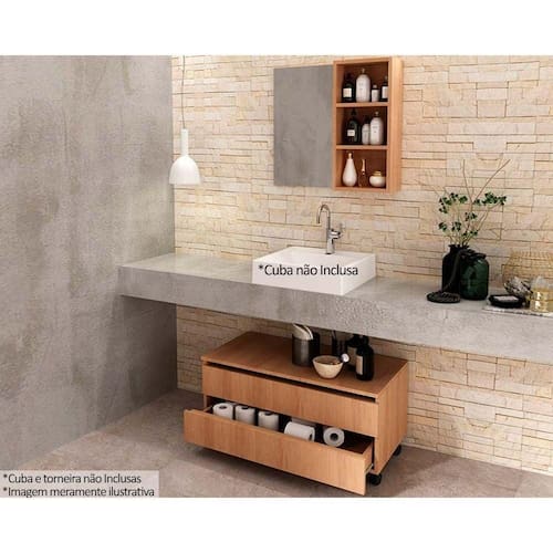 Conjunto De Banheiro Balcão C/ Rodizios Bn3603 S/ Cuba 80cm E Armário C/ Espelho Bn3609 Amêndoa - Tecno Mobili