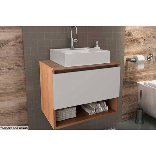 Conjunto De Banheiro Balcão Suspenso Bn3606 C/ Cuba Pia Bn3600 60cm Cor Amêndoa/branco - Tecno Mobili