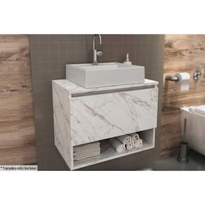 Conjunto de Banheiro Balcão Suspenso BN3606 c/ Cuba Pia BN3600 60cm cor Mármore Branco - Tecno Mobili Abaixo segue os produtos do KIT: Conjunto de Banheiro Balcão Suspenso BN3606 c/ Cuba Pia BN3600 60cm cor Mármore Branco - Tecno Mobili Gabinete de Banheiro Suspenso BN3606 1 Porta 60cm cor Mármore Branco - Tecno Mobili